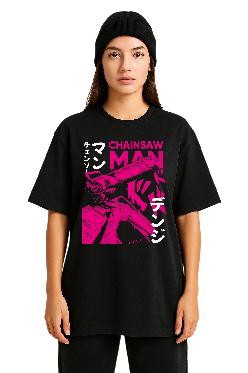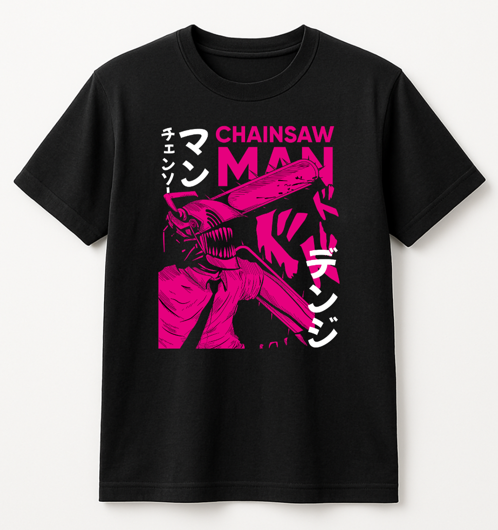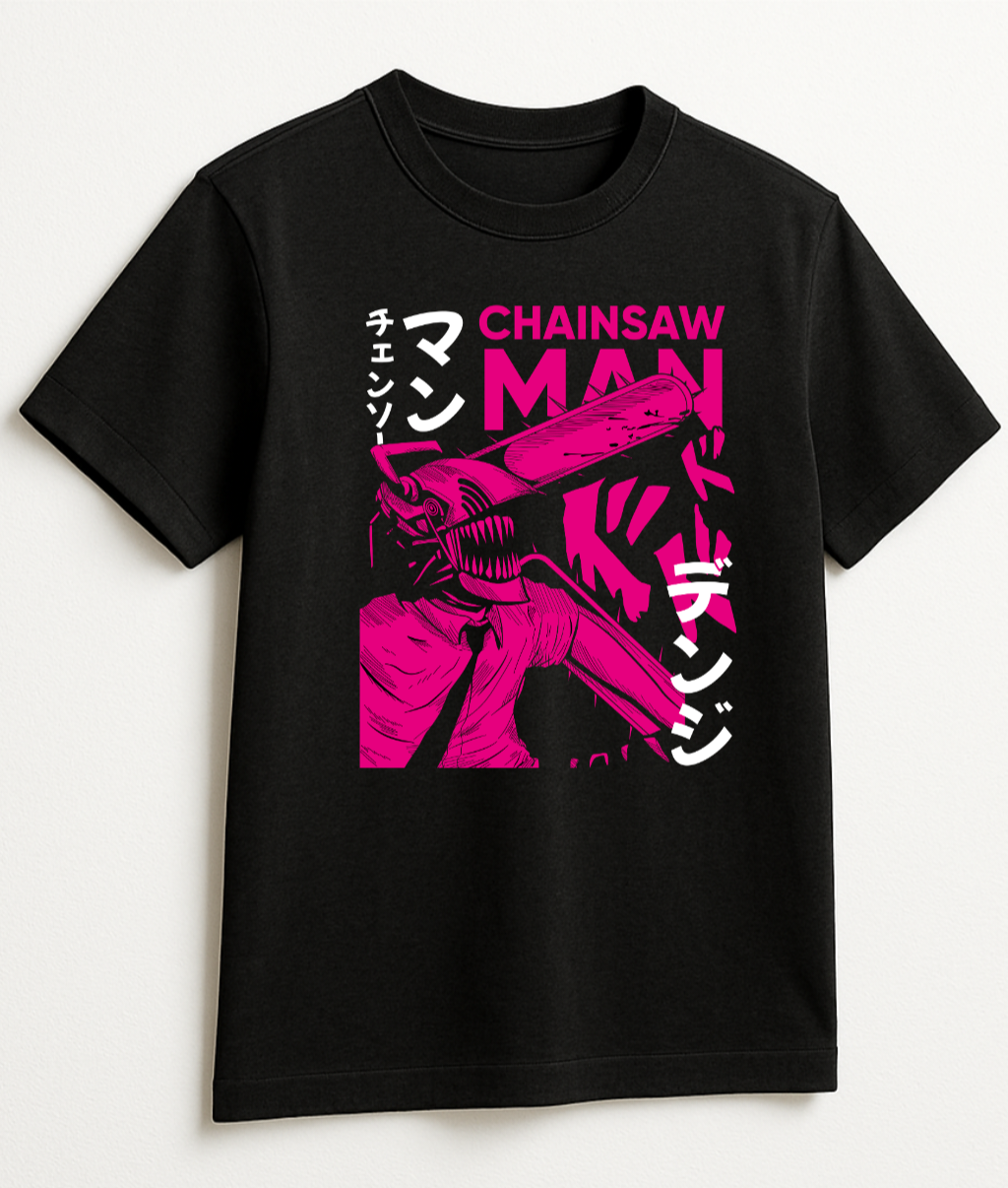 La Playera Chainsaw Man Pink Series es para los fans que viven la adrenalina del anime. Confeccionada con 100% algodón peso completo y hecha en México, te ofrece una comodidad robusta y duradera.