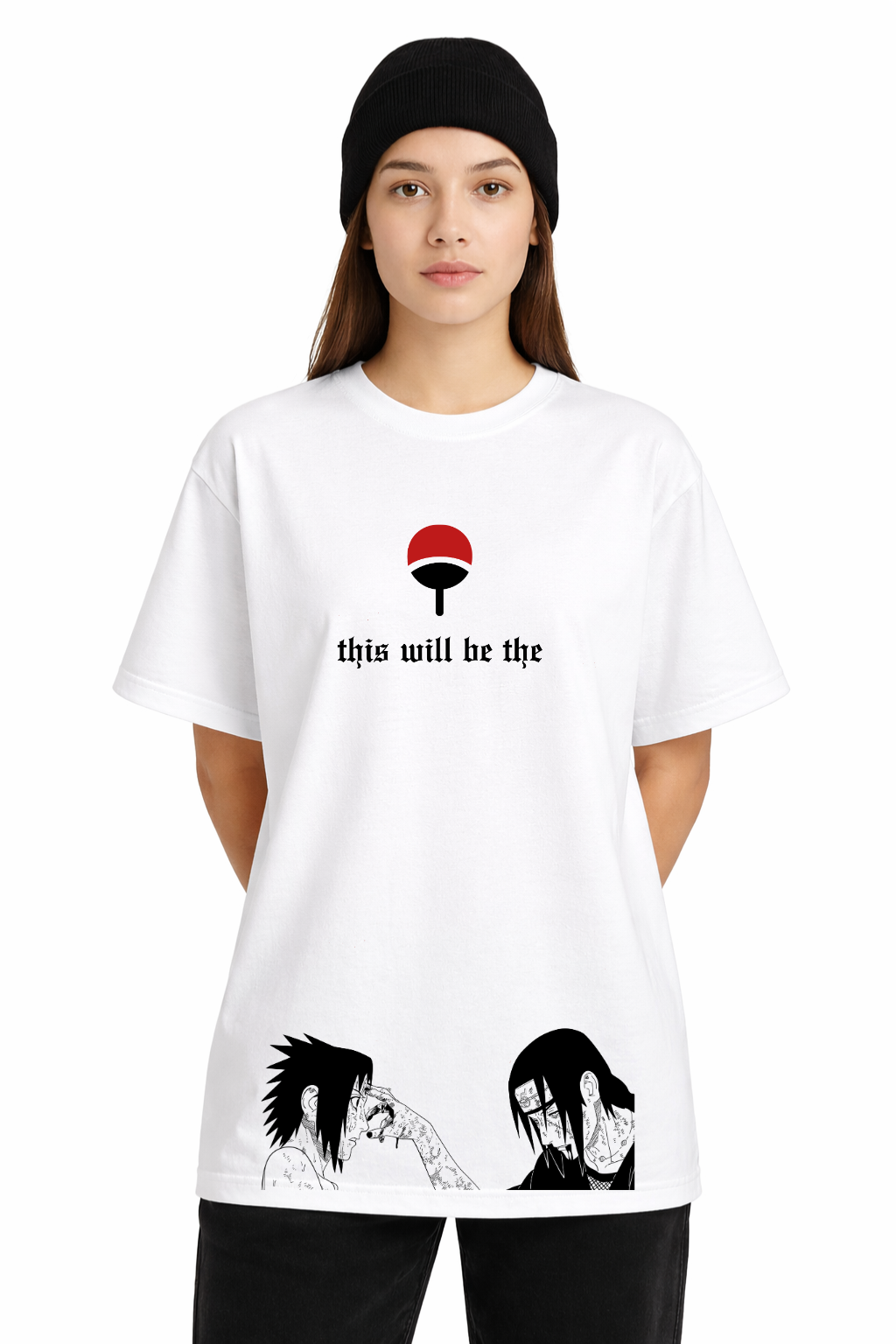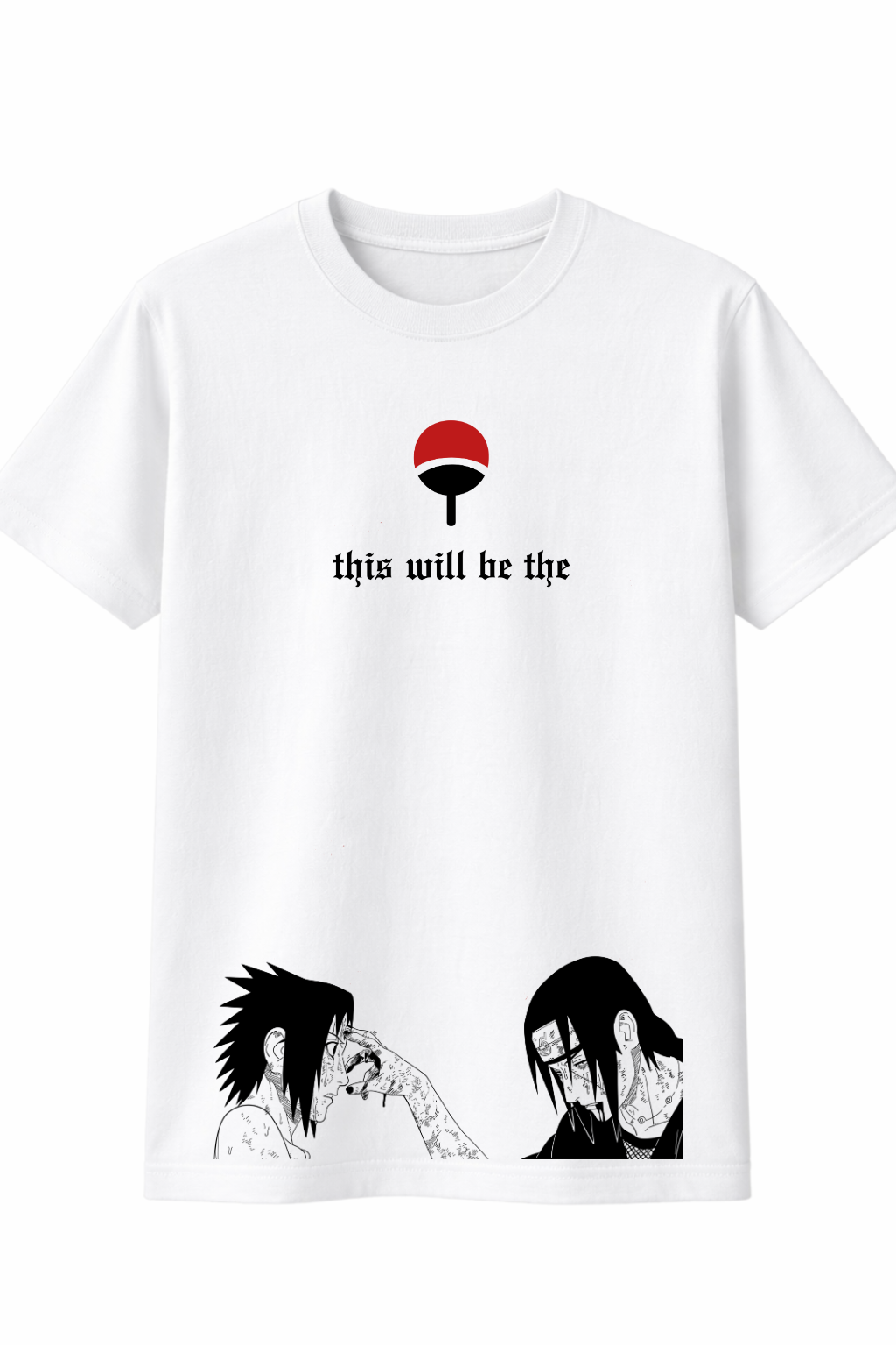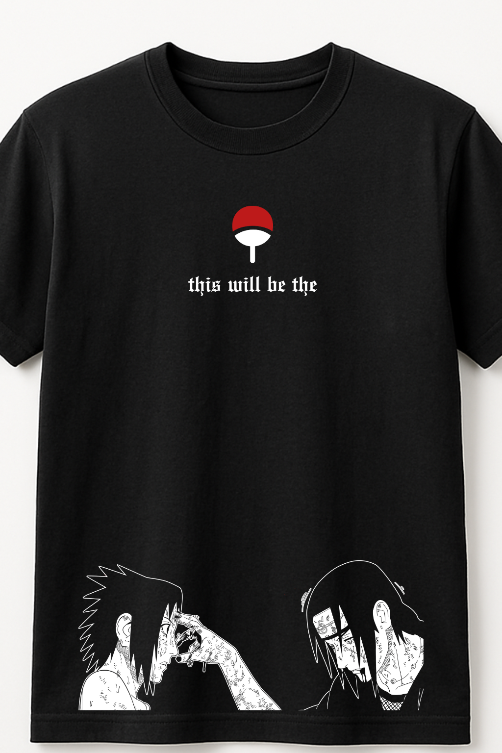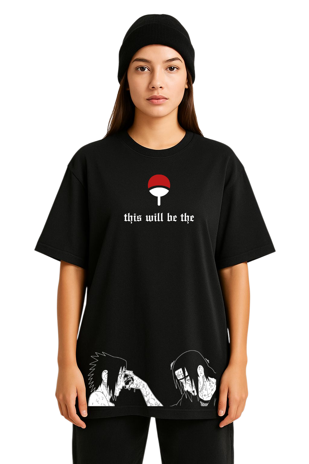 Playera inspirada en Sasuke e Itachi Uchiha en estampado de alta calidad confeccionada en algodón premium y estilo semioversize ideal para fans del anime con gusto por piezas profundas y simbólicas.