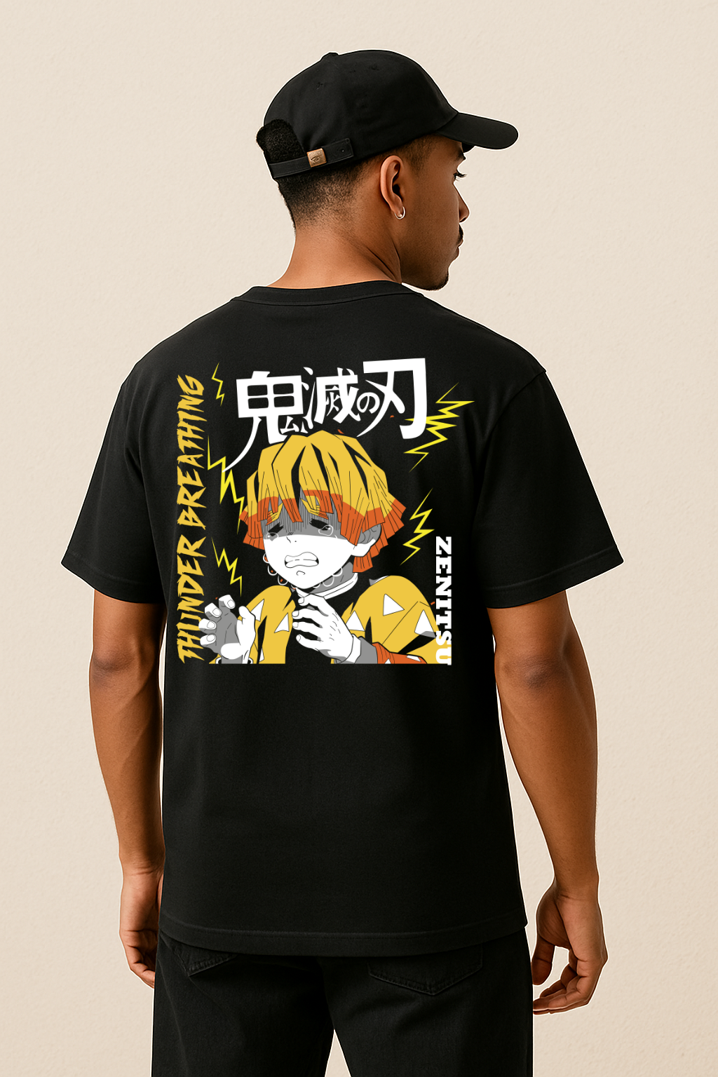 Estampado de Zenitsu Agatsuma con tecnología Premium de alta definición te ofrecemos la solución a mejora tu experiencia al vestir eligiendo una playera que se mantendrá suave, con un color negro profundo y un diseño que irradia poderoes llamativos relámpagos del diseño permanecerán nítidos y sin cuartearse, resistiendo el desgaste sin perder su impacto visual.